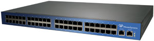 The TRX 100 includes 48 standard 10/100/1000BASE-T auto-sensing ports, and offers two options for the four 10 Gbps Ethernet uplinks: powered CX4 for active copper and optical CX4 cables, or SFP+ for fiber optic cabling. The inclusion of four 10 Gbps uplinks minimizes over-subscription, and enables the TRX 100 to deliver peak I/O performance from today's quad-core processors.